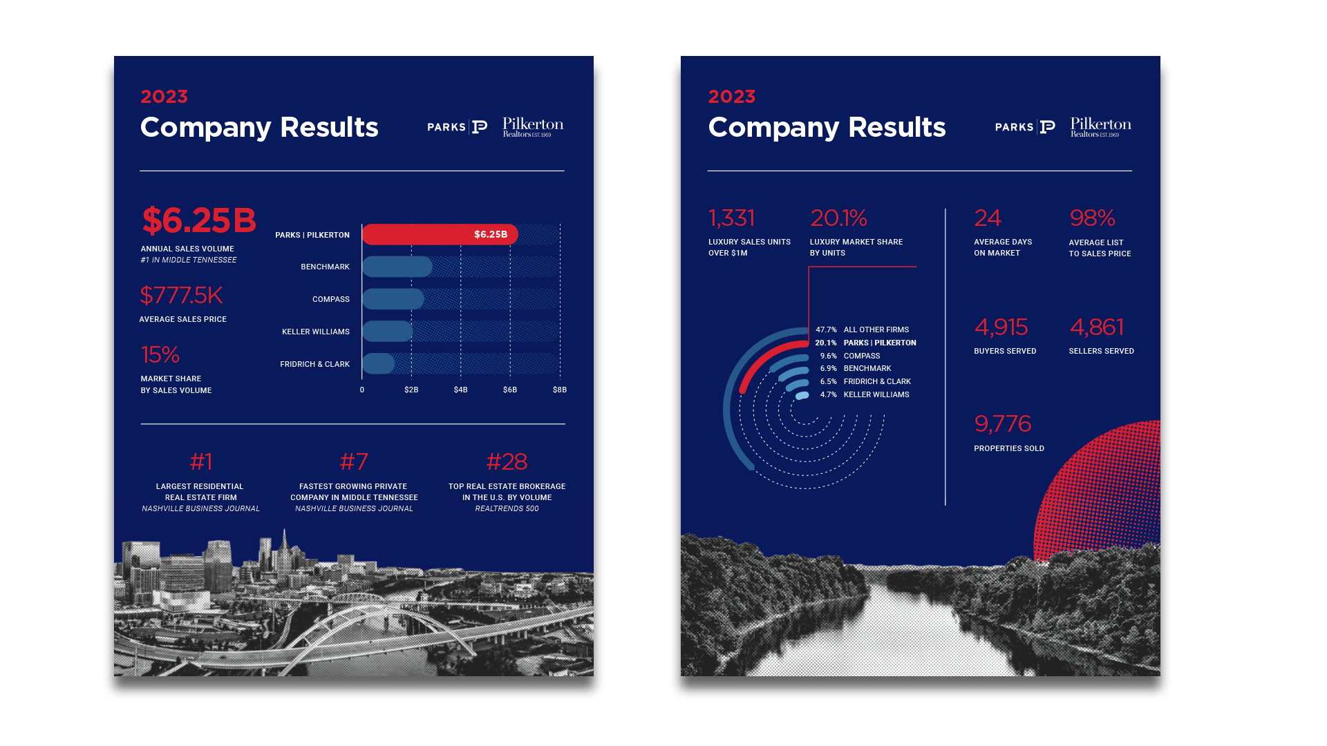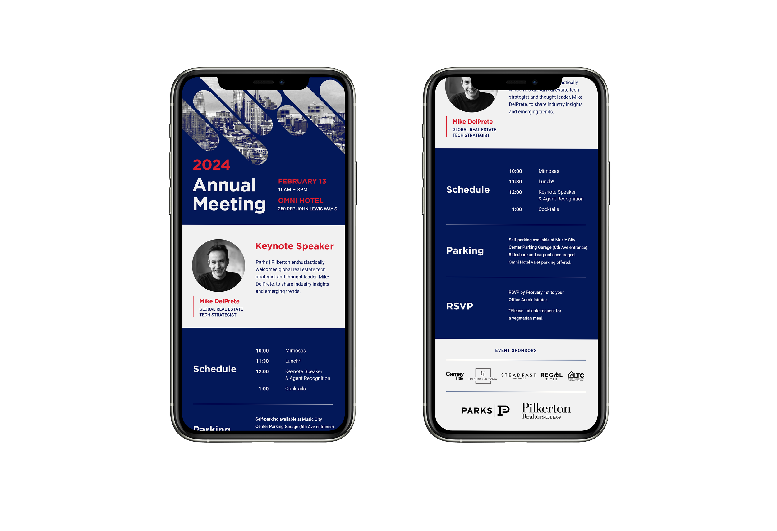 These materials were created for the Parks Real Estate’s internal Annual Meeting in Q1 2024. Event branding was created and used for both print and digital media. Email blasts were created to promote the event internally. Brochures and flyers were created as handouts. Social media posts were also created to share results publicly after the event.