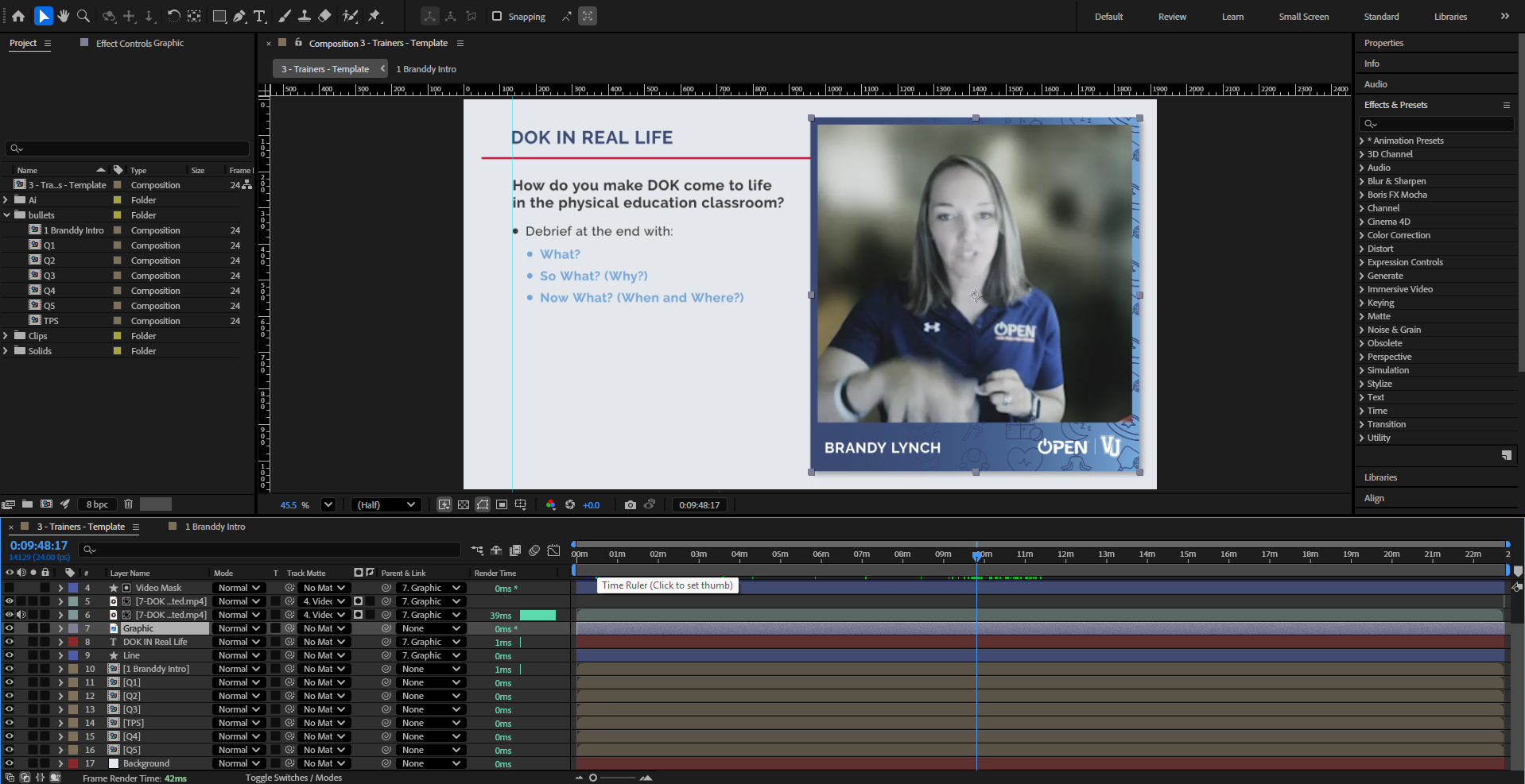 As of September 2025, the OPEN Certified Teacher Training Course has been available for just over a year, receiving over 560 course completions and positive testimonials. 96% of participants also gave the course 5 stars for quality satisfaction. This was a large scale project that pushed me to streamline my motion graphic workflow and create project-specific templates; skills I now bring to every future project.
